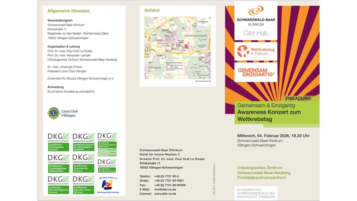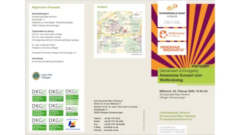 The event is a concert of the Pro Musica e.V. Orchestra. The event takes place in the central auditorium of the Cancer Center Schwarzwald-Baar-Heuberg to allow a cultural get together of patients, musicians and the larger community. Besides music, this event also raises the voice for cancer awareness, psycho-social support, acts as fundraiser for the psycho-social cancer counseling agency of the Cancer Center.