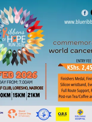 This World Cancer Day 2026, lace up for purpose. Join us for the 2nd annual Ribbons of Hope Run by Blue Ribbon Actives - a supported 5K, 10K, 15K & 21K run dedicated to honoring survivors, remembering loved ones, & standing with every warrior still fighting. Run with heart. Run for hope. Run for a world without cancer!