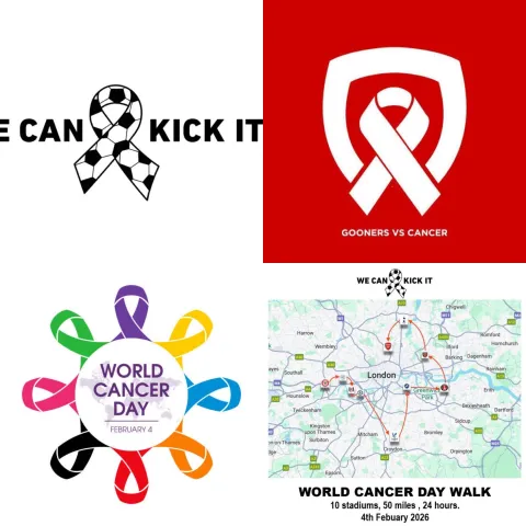 A group of fundraisers from "We Can Kick It UK" and "Gooners v. Cancer" will be walking 50 miles between 10 different London Stadiums of Professional Football/Soccer Clubs to raise awareness and funds for Cancer Charities!