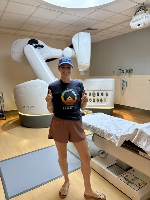 It spread to my liver, lungs, and bones. I underwent radiation to my spine and began targeted therapy. Just when I thought I had found some footing, in June 2025, melanoma spread to my brain. I was diagnosed with seven brain tumors and underwent CyberKnife radiation.