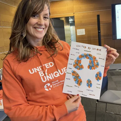 My piece embodies what United by Unique, the new theme of World Cancer Day, means to me. It highlights the importance of placing people at the heart of cancer care—a sentiment beautifully captured by the WCD logo: a person embracing the world, or perhaps a person standing at the centre of it.